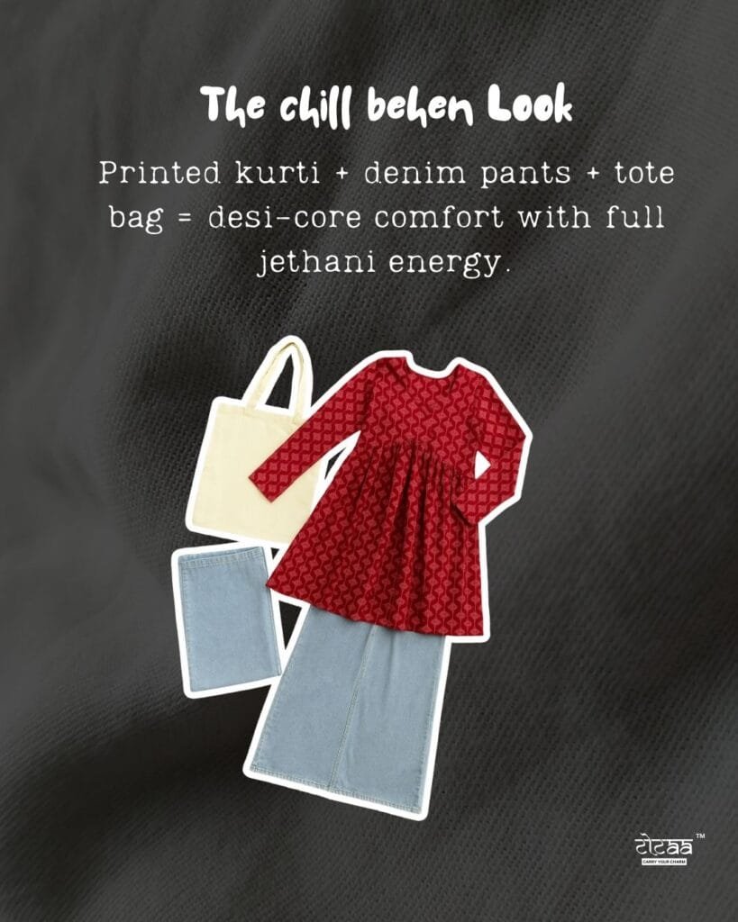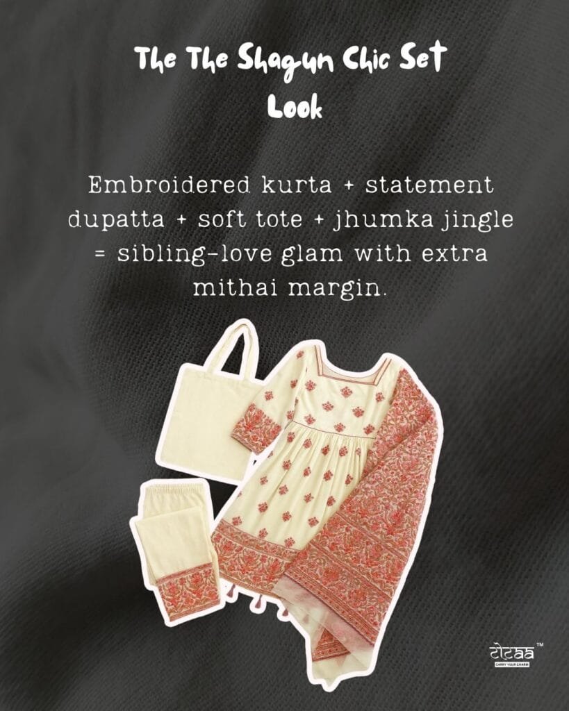 You know that one cousin who shows up with great footwear, a fun bag, and a kurta that looks like it walked off a Pinterest board? This look is for her — or you, if you're ready to claim that vibe.